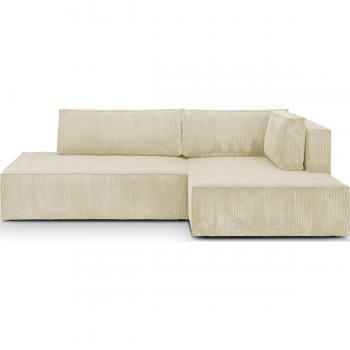 Canapé d'angle droit convertible 3 places en velours beige