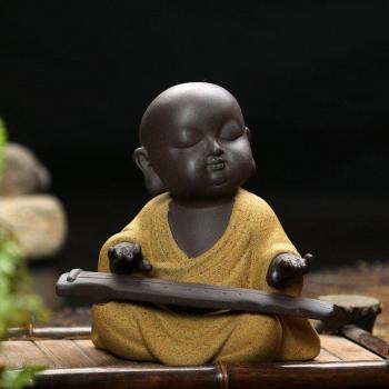 Rétro violet sable poterie novice moine pipi poupée thé ornements pour animaux de compagnie artisanat petit bouddha statues collection artisanat