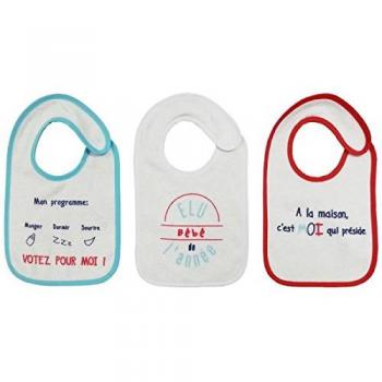 Bavoirs Playshoes multicolores en coton‑polyester doux, doublés de double face frottee, motif animal joyeux, imperméables pour protéger bébé des éclaboussures, dimensions 39×30×34 cm.