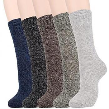 Merclix Chaussette Chaude Homme Hiver Chaussettes Chaudes Vintage Épaisse Tricot Thermiques Laine (39-42, 5 Paires-Rouge A)