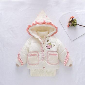 Vêtement d'hiver fille 12 mois à 3 ans, manteau chaud, capuche, volants, rose et blanc