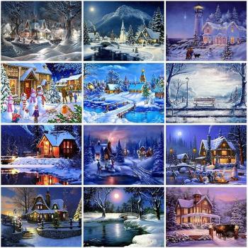Peinture de diamant de paysage de maison, affichage complet, broderie de paysage, perceuse ronde complète, point de croix, décoration de la maison
