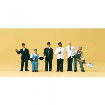 Neuf figurines N de personnel ferroviaire, peintes à la main et posées en station, ajoutent un réalisme saisissant à votre maquette. Chaque détail, des uniformes aux accessoires, reflète l’ambiance authentique d’une gare traditionnelle.