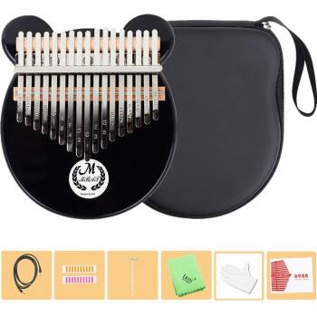 Kalimba 17 touches en cristal noir, ours, avec étui de rangement