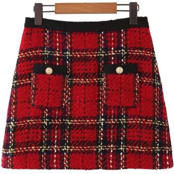 Mini jupe féminine rouge vintage en tweed patchwork