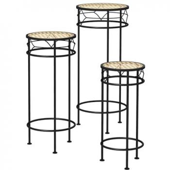 Support pots de fleurs 3 pièces - lot de 3 étagères à fleurs - portes plantes empilables - métal époxy plateaux carreaux céramique bleu