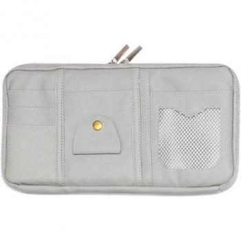 Coffret rangement véhicule en cuir PU : pare‑soleil, cartes, pochettes avec filet gris