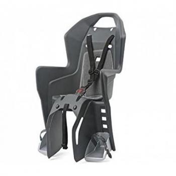 Porte‑bébé Polisport Koolah, taille unique, gris/noir, s’installe sans outil sur la trousse de bagages d’une bicyclette grâce à trois sangles sécurisées ; rembourrage confortable, capuchon anti‑pluie, et réglage ajustable pour enfants jusqu’à 22 kg.