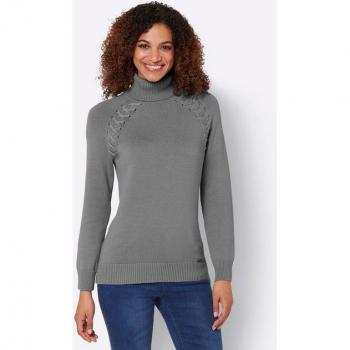 Col roulé en pur coton - Gris pierre chiné