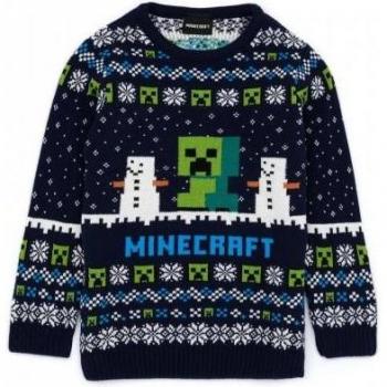 Pull de Noël en laine Creeper pour enfants Minecraft 11-12 ans bleu marine