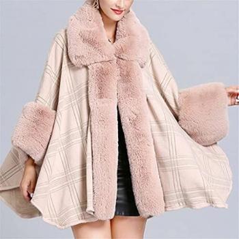 GYZCZX Femme Fausse Fourrure Check Plaid Tartan Cape Poncho Cardigan Tricot Lady Châle Étole Wraps Pull (Color : Blue, Size : One Size)