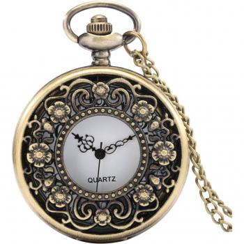 Montre de poche rétro en bronze avec pendentif floral