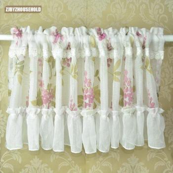 Rideau Transparent Fil Café Court Cuisine Floral Anti- poussière Ombre Douce