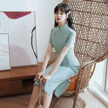 Plaid chinois robes Classi coton Qipao robe quotidienne Style Oriental Cheongsam moderne