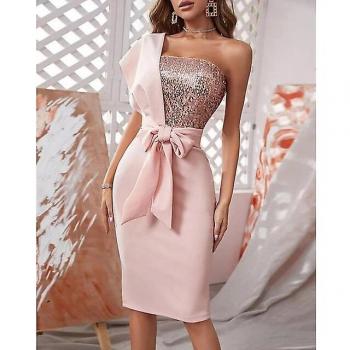 Robe de soirée paillettes rose manches courtes M