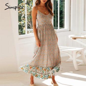 Simplee Boho robe longue à imprimé fleuri, style col en V, bretelles fines, idéale pour l'été