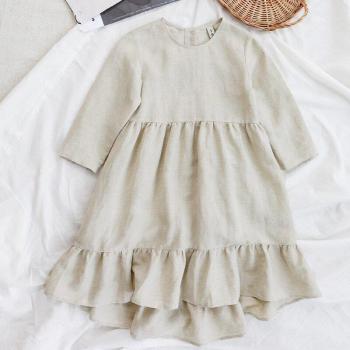 Robe en coton et lin à manches longues pour bébés