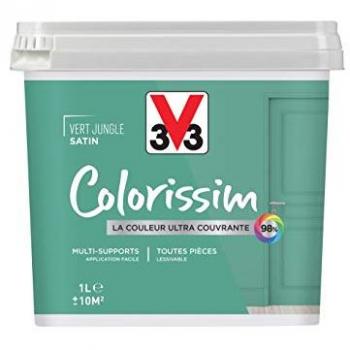 V33 Peinture Satin Vert Jungle – Colorissim Multi‑supports 1 L