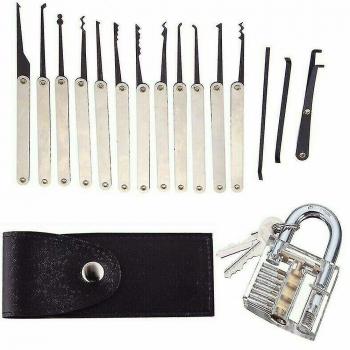 Boîte à outils crochets serrures 25 pièces – Acier inox et verrous transparents