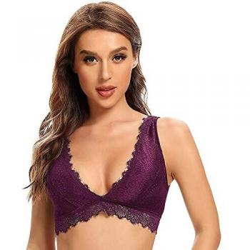 Brassière Femme Dentelle Bralette Coussinet Amovible Lingerie Crop Top sans Armature