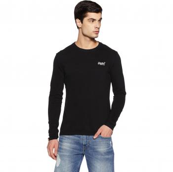Superdry Orange Label T-shirt Vintage à Manches Longues EMB, Haut Homme, Noir