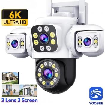 Caméra de surveillance 6K 12MP Yoosee – Vision à 360°, triple écran