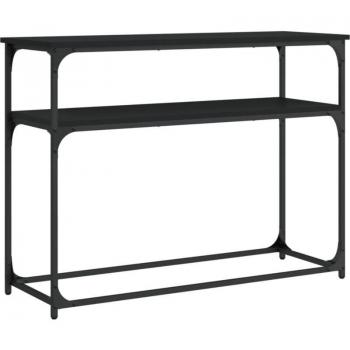 Table console d’appoint avec rangements intégrés, bois d’ingénierie et métal noir – 100 × 30 × 75 cm