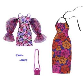 Ensemble de Mode Barbie - Pack de 2 Tenues avec Mini Robe Bouffante, Robe Longue, Talons et Sac à Main