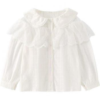 Chemisier blanc à manches longues pour petites filles avec dentelle