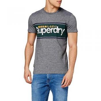 Superdry T-Shirt à Rayures Core Logo, Sergé Gris Academy, S Homme