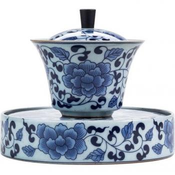 Tasse à thé Kung Fu en céramique bleu-blanc
