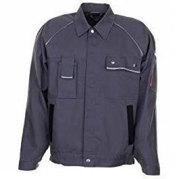 Robuste veste de travail Planam, tissu canvas 65 % polyester et 35 % coton, coupe cintrée pour un ajustement ergonomique, ceintures latérales renforcées, poches pratiques, couleur gris/noir, taille 46.