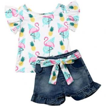 Ensemble T-shirt et shorts denim flamant
