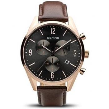 Montre Homme Chronographe Doré Rose Cuir Marron Bering 10542_562