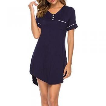 ABirdon Chemise de Nuit Femme, Manche Courte Robe de T-Shirt à en V S-XXL