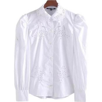 Blouse à manches longues avec ajouré et broderie pour femme