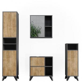 Vicco - Ensemble de salle de bains Leano, Anthracite et Chêne de montagne, Kit 4