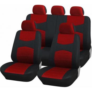 Housses universelles pour sièges de voiture A18 avec housse de volant et de ceinture Rouge Noir