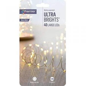 Premier 40 LED Battery Fairy Lights - 3.9 Meters, Warm White, Indoor Use