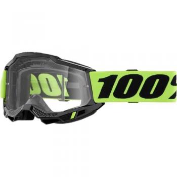 Occhiali da motocross Accuri II in giallo fluo con lenti trasparenti offrono visibilità impeccabile sotto il sole, grazie a vetro anti‑riflesso e protezione completa contro polvere e detriti. Il telaio leggero si adatta perfettamente alla testa, garantendo comfort durante le lunghe sessioni di pista.