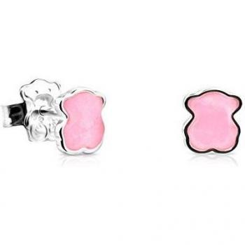 Tous Orecchini D’Argento Con Orsetto E Quarzo Rosa