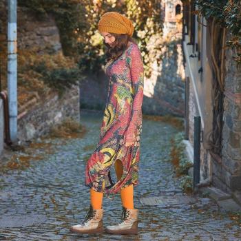 Abito Giallo con Maniche Lunghe e Fori per Pollice
