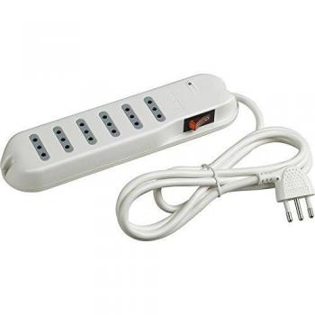 Adattatore triplo bianco con spina rotante e interruttore integrato, capace di gestire carichi fino a 16A. Offre tre prese universali e due bivoltiche, perfetto per ufficio o casa, combinando sicurezza e praticità in un unico dispositivo.