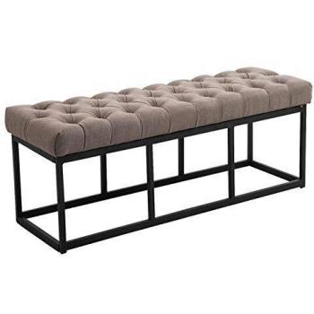 Panca Amun in Metallo Nero e Tessuto Grigio Taupe 120 cm