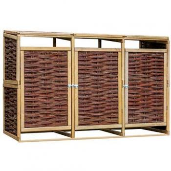 VidaXL Shed per tre bidoni della spazzatura in legno di pino e vimini