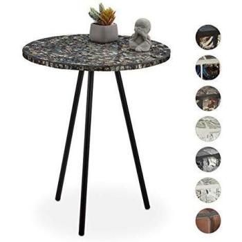 Tavolino Rotondo Decorativo in Mosaico, Realizzato a Mano, Nero Antico e Oro, 50 x 41 cm - Relaxdays