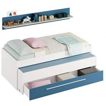 Habitdesign Letto Nido Giovanile Due Letti e Cassetto Bianco Alpi e Blu
