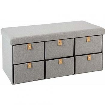 Pouf grigio Suède pieghevole con 6 cassetti