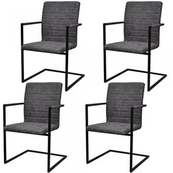 VidaXL 4X Sedia da Pranzo a Sbalzo con Coste Grigie Braccioli e Schienale Seggiole a Sbalzo