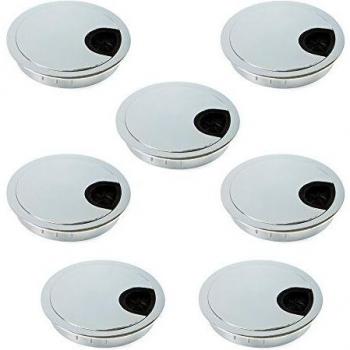 Set di 7 passacavi circolari da incasso, diametro 80 mm, in Zamak cromato - Emuca